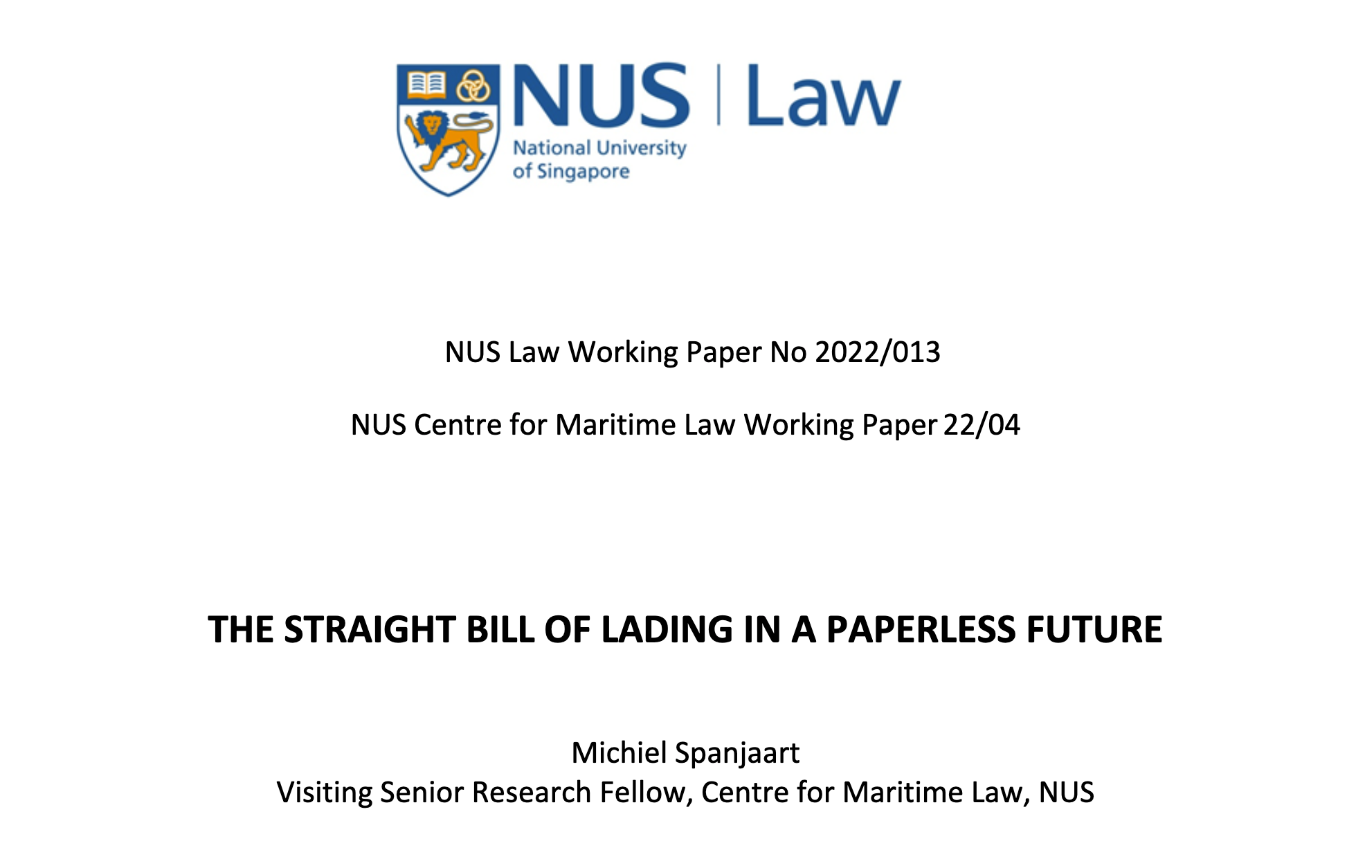 Publications The Straight Bill of Lading in a Paperless Future NUS Law Working Paper No. 2022/013 NUS Centre for Maritime Law Working Paper 22/04 48 PagesPosted: 22 Sep 2022 Michiel Spanjaart […] Lees meer